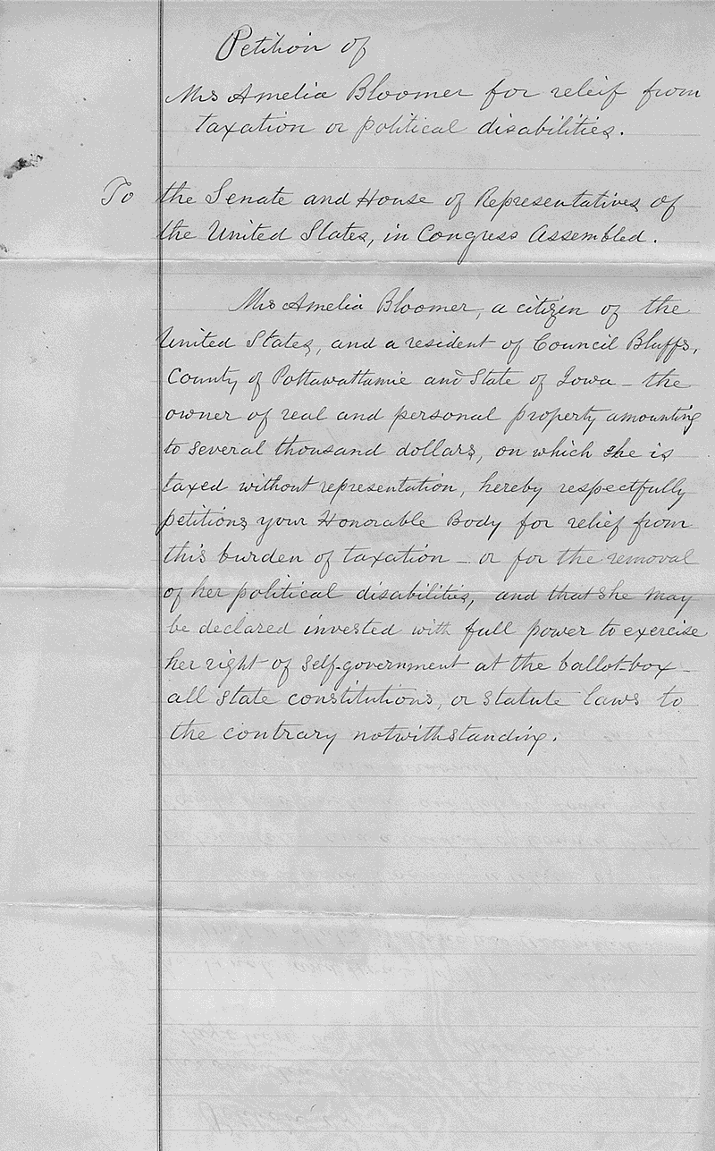 Petition from Mrs. Amelia Bloomer